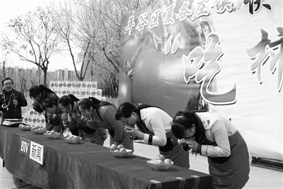 近日,平谷区夏各庄镇第三届“快乐吃不停”吃柿达人大比拼活动开赛,24名工会会员参赛。每人限时60秒,规定时间内吃得最多者为胜。比赛中,选手各色吃相引来在场观众的阵阵欢笑。最终,来自村级联合工会的高亮英成为比赛的“吃柿达人”。本报记者 马超 摄影报道