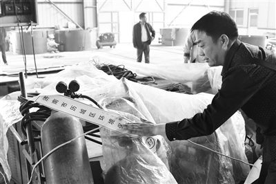 4月17日,在涉事的山东绿杰环保节能科技有限公司生产车间内,一名济南市环保局的工作人员在查封设备。记者4月17日从济南市政府获悉,针对环保部督查组对山东绿杰环保节能科技有限公司执法受阻一事,济南市认为这是一起阻挠环保执法的恶性事件,目前公安机关已传唤4名涉案违法行为人,涉事企业立即停产整顿。