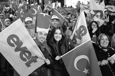 新华社电 土耳其总统埃尔多安16日夜间宣布,执政党正义与发展党和支持者力推的修宪草案在当天举行的全民公投中获得通过。修宪支持者走上街头庆祝,反对党表示公投存在不当行为,要求重新统计部分选票。