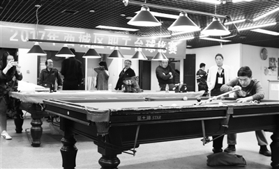另据了解,西城区职工台球赛近日圆满落下帷幕,42个机关企事业单位的160多名选手参加了比赛。经过激烈的角逐,西城房管局谭超、区环卫中心刘旭分别荣获男子组冠亚军;月坛街道龚云霞、广外街道谢红娜分别荣获女子组冠亚军。值得一提的是,在男女组前14名选手中,西城环卫中心有3名职工榜上有名,为环卫系统争得了荣誉。