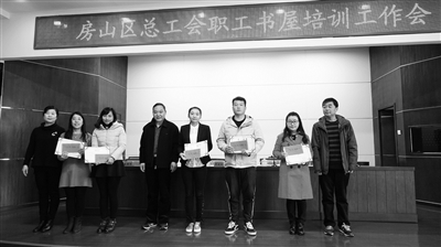 近日,房山区总工会召开职工书屋培训工作会,来自全区基层职工书屋负责人和管理人员共计80余人参加会议。图为区总工会领导对征文比赛获奖个人进行表彰,对职工书屋先进单位代表进行授牌。