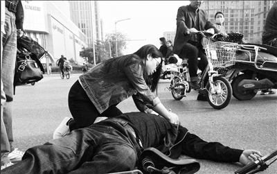 18日早上8点多,正值早高峰,在西安市北郊文景路附近一位老人突然昏倒在地,口吐白沫。一位年轻女孩跪地施救老人。立即蹲下对老人进行人工抢救。视频的拍摄者,也是事件的目击者瑚先生向记者述说了早上发生的这一幕。(4月19日华商网)
