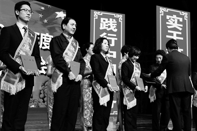 昨天,北京首商集团对2016年度30个集体、70名个人“首商之星”进行表彰。会上,北京市劳动模范姚璐璐带领百名“首商之星”宣誓:志愿成为争做“首旅大工匠”的领军人物。今年,首旅集团工会还将在全集团开展评选大工匠活动,激发广大职工学技术、提技能、争做“首旅大工匠”的热潮。