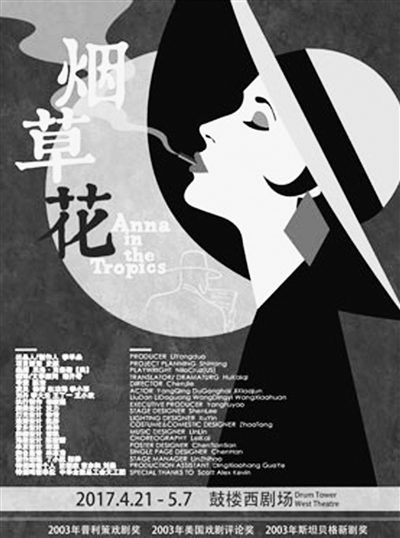 《烟草花》即《安娜在热带》,由素有诗人剧作家之称的尼洛·克鲁斯创作于2002年。剧作取材于古巴雪茄厂里特有的文化传统,讲述了一个“朗读人”来到手工雪茄烟厂之后所发生的故事。该剧成功地将爱情与欲望、文学与现实、传统与发展等人类纠结至今的矛盾以诗化的语言及结构呈现出来。