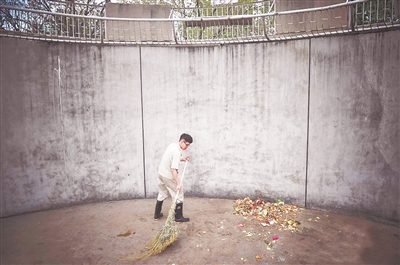 四月的一个周末,天津动物园热闹了起来。在游人往来的熊山,饲养员赵长瑞已经喊得喉咙沙哑。入行不满一年的他没有想到,“熊爸爸”最磨人的工作竟是劝说游客不要投喂食物。到了周末和节假日,饲养员每天都要从运动场里清理出上千斤的垃圾,堆满好几个垃圾桶,场面壮观。