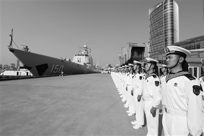 4月23日,人民海军成立68周年之际,由导弹驱逐舰长春舰、导弹护卫舰荆州舰和综合补给舰巢湖舰组成的远航访问编队,上午从上海黄浦江畔启航,将赴亚洲、欧洲、非洲和大洋洲的20余个国家进行为期近180天的友好访问。这次任务是人民海军历史上访问国家最多、出访时间最长的一次远航访问。 新华社发