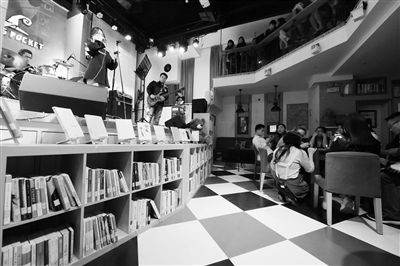 保罗的口袋1912店位于安徽省合肥市,成立于2013年,是一家新型时尚独立音乐书店。这家书店在2016年10月成为合肥公共图书馆联盟成员,将自己的图书结合部分合肥市图书馆书籍共一万余册免费向市民开放借阅。图为保罗的口袋1912店一楼正在举行晚间的音乐演出。新华社发