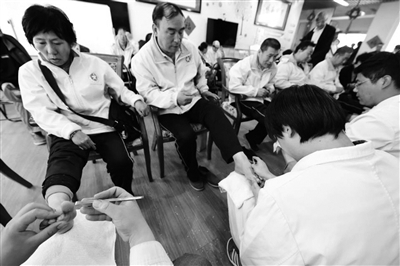 24日,孟氏修脚技师走进广外南里社区邻里服务中心,免费为文明引导员、环卫工人等群体修脚疾。当天,由东城区文明办、东花市街道主办的关爱老人,千名老人治脚疾活动正式启动。由孟氏健康咨询中心技师组成的志愿者服务队,将深入各社区,提供免费修脚,对行动不便的老人还提供上门服务,活动将持续一个月时间。