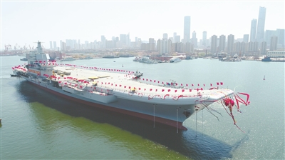 4月26日,我国第二艘航空母舰下水仪式在中国船舶重工集团公司大连造船厂举行。中共中央政治局委员、中央军委副主席范长龙出席仪式并致辞。第二艘航空母舰由我国自行研制,2013年11月开工,2015年3月开始坞内建造。目前,航空母舰主船体完成建造,动力、电力等主要系统设备安装到位。出坞下水是航空母舰建设的重大节点之一,标志着我国自主设计建造航空母舰取得重大阶段性成果。下一步,该航空母舰将按计划进行系统设备调试和舾装施工,并全面开展系泊试验。图为航空母舰在拖曳牵引下缓缓移出船坞,停靠码头。新华社发