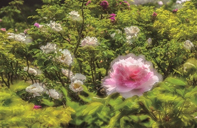 春光灿烂,正是赏花好时节。近日,中山公园南坛门西南侧的牡丹池里,千余株牡丹在青翠的古柏林下竞相开放,受到了广大游客喜爱。