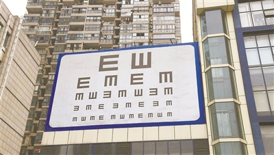 重庆一医院高楼现巨型“视力表”。据悉,该医院大楼的巨型“视力表”十分醒目。有市民戏称:“这要是再看不见,就真该考虑戴眼镜了。”