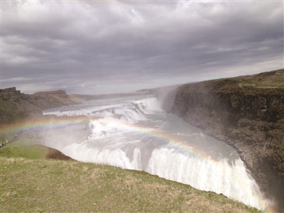 这个公园2004年被联合国教科文组织认定为历史遗产,不论是人文历史还是自然景观,都非常值得探究一游。远处鸿沟、岩石绵延,奇石遍地,这是欧洲与美洲两大板块挤压断裂形成的奇景。车行约15分钟路程,就是最有名气的黄金圈瀑布,只见滔滔流水,有如自天上奔来,又倾泻奔涌而下,如雷声般令人震撼,又于拨云见日之际,忽见彩虹出现,大家都赞叹大自然的壮美。