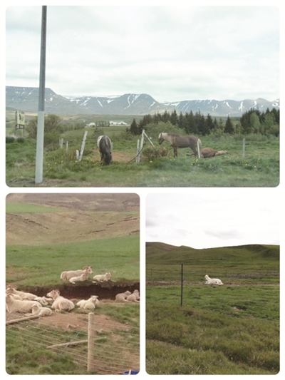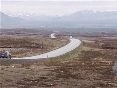 晌午时分,我们离开斯科加瀑布,仍旧沿着1号路继续行程,路旁人烟稀少,红顶农庄均远离公路,隐藏于山脚下,青山绿草,远处山顶上白雪皑皑,如诗如画般的美景,难以描述,难怪冰岛人均寿命为全球之最。
