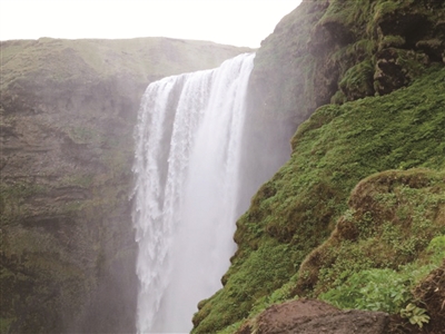 我们继续沿1号路往西前行,到达斯科加瀑布,这道巨大壮观的瀑布只比塞里雅兰瀑布稍远一点。瀑布旁有小径可以爬上山顶的瀑布源头, 从半山腰俯视,只见一片青山绿野,山坡上及山脚下的羊群悠闲地低头觅食,小羊羔子跟在母羊身边的画面,真是美不胜收,心旷神怡。天地如此宽阔,脚似乎也没那么痛了,真为自己爬上山顶来而高兴,让我留下深刻的回忆。