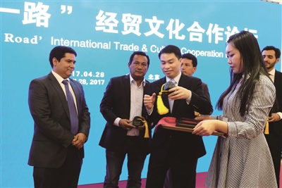 4月28日,“一带一路”经贸文化论坛在国家会议中心举行。本次会议由中国国际经济合作学会投融资促进委员会主办。会议包括国际经贸合作与国际文化合作两大板块,出席会议的各委员会成员、驻华使节、企业代表等就经贸国际合作经验、文化产业国际合作经验、中国文化发展历程作出了分享交流。本报记者 白莹 周世杰 摄影报道