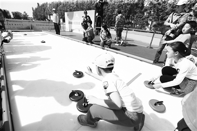本报讯(记者 白莹)4月29日,沐浴着和煦的阳光,孩子们欢快的笑声,大人们兴奋的欢呼,热闹非凡的场面吸引了无数人的目光。原来在四季青镇第三届运动会的现场正在上演着一场别开生面的家庭趣味“冰壶大战”。走近一看,周边的展板上还介绍了许多冬奥会上冰壶项目的知识,围观的群众一边加油助威,一边跃跃欲试准备在冰壶挑战赛结束后亲自体验一把。