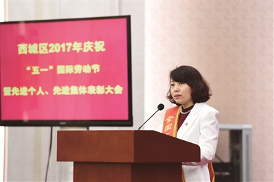 会上,宣读了荣获全国、市级先进集体、先进个人名单。其中,首都医科大学附属复兴医院月坛社区卫生服务中心和北京市西城区德胜街道办事处保洁队分别获得2017年“全国工人先锋号”。北京同和居饭店有限责任公司高级技师张紫薇获得2017年“全国五一劳动奖章”。其余共有2家单位荣获“首都劳动奖状”,5个班组获得“北京市工人先锋号”,13名个人被授予“首都劳动奖章”。