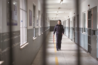 在房山公安分局看守所视频监控室内,巨大的屏幕显示着每一个监区的全貌,在押人员的一举一动在这里一目了然,民警谢红娟像个狙击手目不转睛盯着屏幕。此时,整个监控室只能听到钟表时针转动的声音。“监区‘平安’无小事,在押人员每一个动作,甚至面部表情我们都要观察的细之又细,不能有丝毫马虎。”谢红娟说。