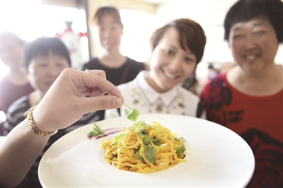 这不,老板娘马二其听说有在北京工作过的厨师支招儿,骑着电动自行车就过来了,还把农家院所有的工作人员都招呼来,一起取经。