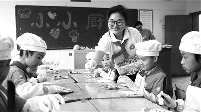 为了培养孩子们健康的饮食习惯,雀巢员工组织学生参与菜肴制作,并以问答的形式告知他们各种食品的营养成分,并专门设置了《小小厨师训练营》公开课。来自成都新东方千禧大酒店厨师长吴静,还教孩子们用蔬菜制作沙拉。