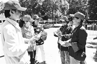 这些日子,只要您走上街头,就会发现一些白发老人,戴着小红帽,或坐在小板凳上,双目炯炯有神,严密关注着街面上的情况。或三五成群,徒步巡逻在背街小巷,仔细观察周边的一切,就连路面上有个烟头、纸屑也不放过。遇到有打听道儿的,更是热情引导,笑脸相迎。这些白发志愿者已经成为咱北京的一道亮丽的名片,为北京添了光,增了彩。