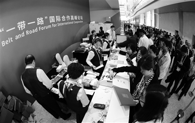 5月14日,在北京国家会议中心,工作人员销售纪念邮品。当日,“一带一路”国际合作高峰论坛开幕式在北京国家会议中心举行,现场发售的首日封等纪念邮品受到大家欢迎。