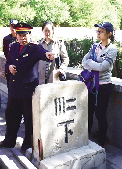 原来几年前,段里组织党员到詹天佑纪念馆参观,老杨见到了这种石碑,旁边的解释是:京张铁路早期使用的里程标志。而刻在上面的奇怪数字没有详细的解读。后来,居庸关火车站的王宝明说,他在车站线路边见到过被遗弃的类似石碑。回来后,老杨就去寻找,结果在路基下发现了这块石碑。老杨和几个同事用了五个小时将石碑抬回车站,可没人认识上面刻的字是什么意思。后来城建的一位老师傅来车站说,这是“苏州码子”。最后是北京铁路科学院民间铁路学者张辉从电脑上查到,石碑上的“〡〢〣〤〥〦〧〨〩十”,与我们现在使用汉字的一二三四五六七八九十相对应。1905年,詹天佑主持修建京张铁路,首次将苏州码子应用于里程碑和坡道碑。早期的铁路沿线标志,有五种,分别是里程牌、坡道牌、桥志牌、道拨牌、机车放气号。目前,青龙桥火车站保留着刻有苏州码子的里程碑和坡道碑。