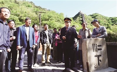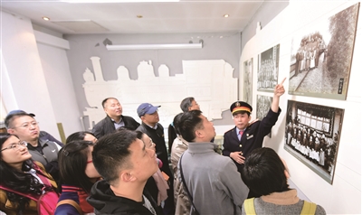 参观者在户外向詹天佑铜像三鞠躬后,被老杨带进了候车室(已经停用)。原来的“男宾候车”和“女宾候车”的指示牌,仍然悬挂着。墙上挂着的历史图片,让参观者大开眼界。一个年轻人指着图片问,在车站站岗的兵,是哪部分的呀?老杨答,这是国民党29军的兵,这张照片是中国电影界的奠基人孙明经先生在“七七事变”的前七天,随国民党政府西北考察团到青龙桥时拍摄的珍贵影像。一个月后就发生了南口战役,当时汤恩伯指挥国民党13军抗击日军,中国军队伤亡3万3千人,击毙日军1万5千人。一位小青年惊讶地说,您太厉害了,这段历史您都研究呀?