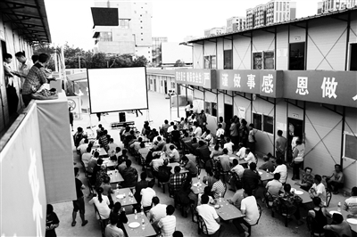 本报讯(记者 杨琳琳)“小时候,看场电影跟过年一样,天天盼着。出来干活三十多年了,再也没正儿八经看过电影。”49岁的钢筋工聂师傅感慨地说。近日,北京城建集团北方公司“送电影下基层”系列活动正式启动,公司后沙峪项目部作为“流动影厅”首站,一开播便引来了200多名农民工兄弟的“强势围观”。