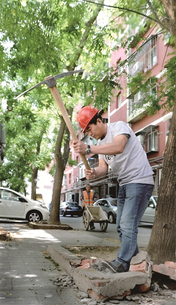 “大妈小心,我来帮您!”李术军从脚手架上下来,帮助张大妈把挤在一起的自行车搬出来,推到老人面前。这时,小区的葛大爷来找李术军问防盗门啥时能安上,李术军回答“下午就安,您放心吧!”。李术军是兆尊建设工程公司职工,负责永外地区10个居民社区的维修工作。