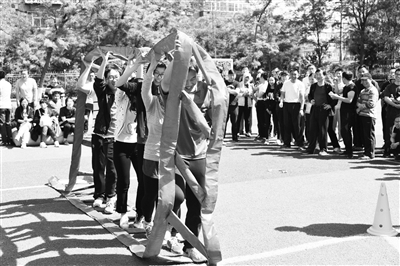 指压板跳绳、快乐足球、袋鼠运瓜、车轮滚滚……近日,顺义区人力社保局工会组织200余名干部职工举办了2017年职工趣味运动会。运动会的各个趣味项目既让职工体会到合作的重要性,也让他们乐在其中。本报记者 张江艳 摄影报道