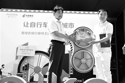 本报讯(记者 边磊 通讯员 张馨语)昨天,中国邮政与北京市朝阳区精神文明建设委员会办公室、北京摩拜科技有限公司联合发起的“节能减排,绿色出行,文明用车,从我做起”正能量传递活动在朝阳区十里堡邮局拉开帷幕,同日“绿色骑行”主题邮局成立。