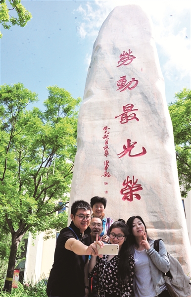 虽然辛苦,但大家脸上却没有丝毫的疲惫和倦怠,主楼门前矗立着的“劳动最光荣”石碑,也许对此做了很好的诠释——“劳动最光荣”是对劳模的尊崇,更是对普通劳动者的勉励。