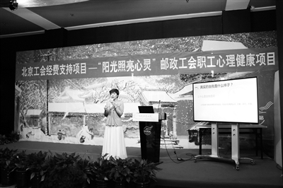 在今年年初举行的北京市邮政分公司职代会上,“阳光照亮心灵”职工小家主题活动被列为2017年市分公司为职工办实事项目。为更好地推进工作,市邮政工会下一步还将通过组织团体心理沙龙、开办微心理课堂等多种服务方式,指导和帮助职工进行心理调节,为职工心理健康护航。
