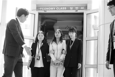 韩国“亲信干政”事件核心人物崔顺实的女儿郑某5月30日被丹麦政府引渡,于5月31日抵达韩国。图为崔顺实的女儿郑某(中)抵达韩国仁川国际机场。