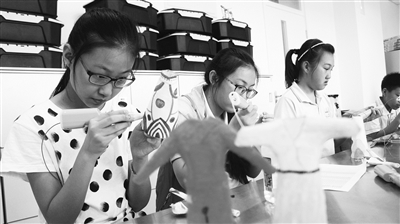日前,东城区回民小学、春江小学联合举办第七届民族文化节活动上,高年级小学生用3D打印笔制作民族服装。本次活动共秀出民族书画、民族手工艺、民族饮食、民族器乐等七大类20余门民族体验课程,展示了学校开展民族文化课程教育的成果。本报记者 任洁 摄影报道