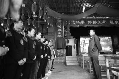焦建鹏大学毕业后在宁夏银川市打过工,在西吉县城开过公司,后来在“美丽乡村”的感召下,回到故乡西吉县龙王坝村发展生态旅游。龙王坝村和西海固的许多村庄一样,曾经也是“穷山恶水”。2010年,焦建鹏带着大学毕业后创业积累的资金,在龙王坝村流转了1200亩荒地和林地,在山地种植杏树和油用牡丹,在林下放养生态鸡,用鸡粪发展大棚草莓……随着当地生态环境的改善,他又建起生态餐厅,成立生态文化旅游公司,产业涵盖林下种养殖、生态采摘、餐饮、娱乐休闲、住宿等。在他的带动下,当地上百户村民直接或间接从事生态旅游产业。如今,曾经的穷山村实现“农村变景区、民房变客房、农产品变礼品”,年接待游客超10万人次,村民人均年纯收入超过9000元,实现脱贫致富。2014年,龙王坝村还被评为“中国最美休闲乡村”。图为焦建鹏在给生态餐厅的员工安排工作。