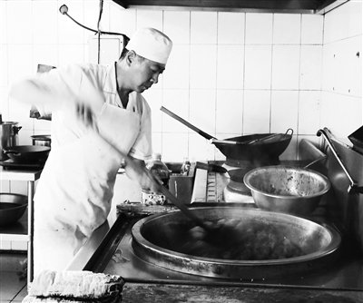 韩大厨有“三绝”。一绝“快”。人送雅号“韩快手”。切堆儿就如同剁饺馅儿一般,不但切得快,而且又细又匀,没有几年的真功夫是绝对不行的。二绝“精”。煎、炒、熘、炸、熏、酱、拌,样样精通,而且出锅的菜,美味可口,色味俱佳。三绝“新”。韩大厨推陈出新,暑运期间每天推出一款“解暑菜”,一天一款,一周不重样。职工想吃了,还可以预约点菜。