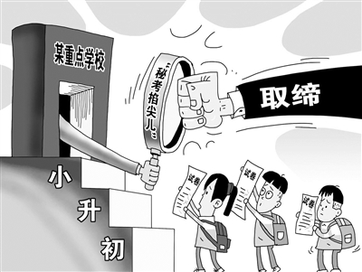 正值毕业季,一些地方本应免试就近入学的“小升初”,却暗藏“赶考热”。义务教育阶段禁止分重点校和重点班,然而眼下,重点校、重点班不仅没有被取消,反而悄然掀起小升初“秘考掐尖儿”大战。教育部门需要动真格的切实取缔类似违规做法。(6月13日新华网)□朱慧卿