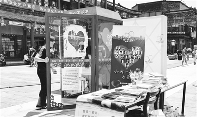 6月25日,“爱心读诗亭”来到前门大街邀市民共献爱心。在北京前门大街,一座小红亭子吸引人们驻足,亭外排起了长长的队伍。“你读一首诗 我捐一本书”是由北京团市委、北京电视台、北京出版集团、北京发行集团共同发起的大型公益活动“带本书给家乡的孩子”第五季的口号。一座座爱心读诗亭在北京各地面向公众免费开放,它不仅会设在北京图书大厦、王府井书店,还会前往首都的各大高校和中小学校,流转到具有浓浓文化气息的国子监及首都各大图书馆,并现身人潮涌动的机场、火车站和各大商圈。(6月26日千龙网)