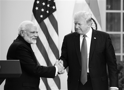 美国总统特朗普和到访的印度总理莫迪6月26日在白宫举行会晤,讨论了贸易和安全领域等问题。特朗普敦促印度政府放松对美贸易限制。图为在美国华盛顿白宫,美国总统特朗普(右)和印度总理莫迪出席联合新闻发布会。 新华社发