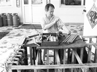 第二天,老尹到现场顶着烈日登梯爬高上了房,准备把不能用的太阳能热水器卸下来。他发现太阳能的储水罐和玻璃管里堵了不少泥沙,老尹不是这方面的行家,凭着以往修理经验的判断,他决定要洗干净泥沙来试试是否能用。60多根玻璃管和配套的塑料水管被他小心拆下,在地面逐一冲洗干净,换裂管,加橡胶垫,两个太阳能储水罐和贮水桶擦洗得里外泛光。当老尹打开喷淋开关时,水流如注,搁置三年的太阳能热水器在老尹的细心修理下竟起死回生。
