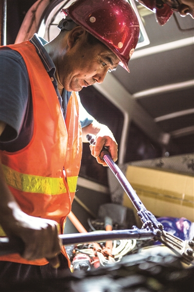 施工开始前,所有班组负责人在班前会上,要向一线职工交代和强调相关任务、施工过程中人员和设备的安全事宜,施工程序的安排以及相关收尾工作。光缆敷设班组会按照设计好的图纸选择指定位置,进行开缆和配盘。由于位置不同,工人们会分别进行井底作业和登高作业,将光缆串接到位。接下来,光缆熔接班组将敷设好的光缆熔接在一起,把电视信号送到千家万户。张建臣表示,一个机顶盒需要两个芯,目前,工程队已经累计敷缆15公里,熔接了30个熔接盒,共熔接1100个芯。一条路段施工完毕大概要一周的时间,而北京所有地区的光缆敷设工程要5、6年才能全部结束。