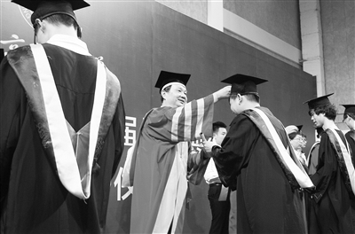 “希望在以后的日子里,你们按时吃饭,不要熬夜……你爱或不爱,母校就在这里,不离不弃。”院长刘在云传达了学院对毕业生的深深祝福,赢得毕业生的热烈掌声。最后,北京联合大学副校长鲍泓和学院领导、部分教授为身着学士服依次上台的毕业生拨穗。