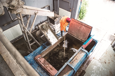 早上8点30分,班长王利全和工人全副武装开始清理过滤池的垃圾,由于雨后天气迅速升温,难闻的气味夹杂着一股热流扑面而来。工人用长竿不断清理着杂物,不一会儿,他们就汗流浃背,这就是他们每天工作的环境……