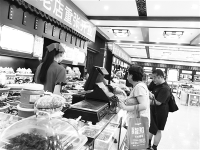 7月13日,距离店面重张开业已近一年。原本是销售淡季,但六必居前门店的月销售额比往年同期却要翻了一番。“这要归功于品种增加、恢复传统产品、服务到位三个原因。”六必居前门店店长高鸿娟介绍。