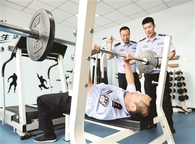 7月18日,东城公安分局前门派出所民警鲁玉梅,刚刚执行完任务返回所里,利用短暂的休息时间来到二楼的民警“休闲驿站”,她先是上网查看当日的时事新闻,然后到书柜前查找自己喜爱的书籍,她把读到的要点记下来,在休闲驿站里与同事们分享自己的读书心得……