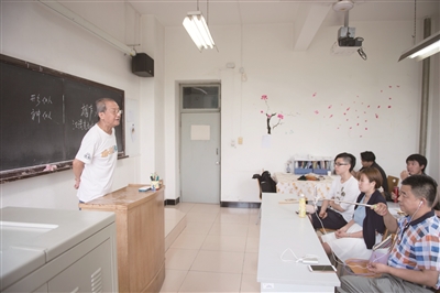 念完贯口的丁广泉显得有些吃力,弟子们赶忙扶他入座,递上茶水扇起扇子,心疼不已。“我的师父是一个可爱的老头,他的言行对我学习汉语起到了非常重要的作用,”日本留学生西田聪说,“他在课堂上很少去示范,为的就是让我们每个人都能拥有属于自己的特点。”而另一位日本学生、在中国工作的惠美顺幸则表示,丁广泉对所有的学生都是公平的,他认真热情,肢体语言丰富,大家经常会聚在老师家里,一起做饭,一起表演。“老师的课总是很精彩,每每有事无法来上课,总会有种空白的感觉。我从来没有想过老师能够如此亲近,因为在日本,老师和学生之间是有距离的。”