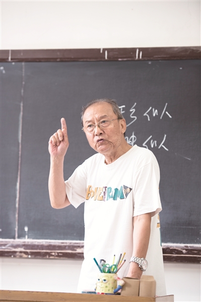 对丁老先生的采访,是在“快乐课堂”的间隙完成的。他穿着T恤衫和短裤,骑着自行车往返于学校和家中,说起话来铿锵有力,爽朗笑声常挂嘴边,叫人很难想象他正在经受着病痛折磨。或许在传授相声技艺的舞台上,丁老先生能够忘掉一切,享受相声给他带来的快乐,未曾变老。