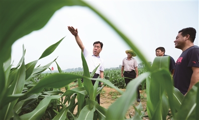8月的北京,酷暑难耐,记者见到的仉锁忠正在玉米地里向村民询问今年玉米的长势、灌溉和病虫害情况。他时而穿梭在玉米地,时而和村民们促膝交谈……不一会儿,他就汗流浃背,汗珠顺着脸颊流了下来,上衣都湿透了。